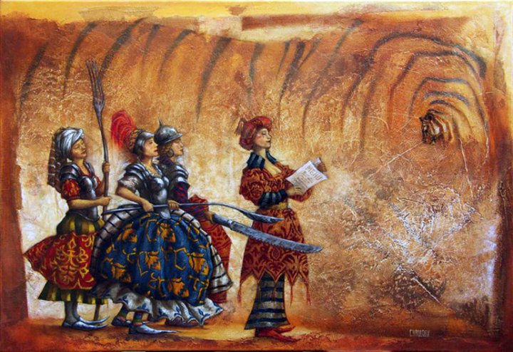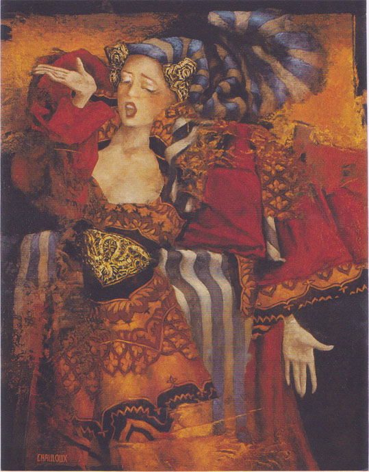 "Bercée par les Grands Maîtres de la Renaissance Italiens et Flamands, Catherine CHAULOUX s'est construit un monde qui a longtemps été fantastique.