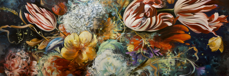 Carmelo Blandino Desde 2005, las pinturas de Carmelo Blandino han obtenido una riqueza aún inagotable de esplendor visual y resonancia emocional de las flores. Ha refinado rigurosamente un enfoque que se podría llamar "barroco urbano", combinando cuidadosamente para el efecto máximo las sutilezas sublimes de la pintura al óleo clásica con la energía crepitante de estilos contemporáneos calle aerosol-pintura-y-plantillas. La flor como sujeto no es inusual en sí mismo. Innumerables artistas a través de los siglos también han considerado las flores de plantas de semilla como sujetos gratificantes. Después de todo, su atractivo a los ojos de los animales es, en muchos casos esenciales para la reproducción de su planta, y seres tan humanos, aunque no al servicio de la función del vector en este proceso, han disfrutado, sin embargo, el placer sin fin en mirando sobre ellos, una satisfacción por encima de y más allá de cualquier función biológica práctico. Dónde Blandino ha demostrado ser excepcional está en su vuelta persuasión de algo mucho más profundo y mayor de sus súbditos, un entendimiento de que unifica prima, sensualidad terrenal con lo trascendental, lo inefable - brío y la vivacidad entretejido con claridad y serenidad. "Mi trabajo es una especie de continuidad en la práctica de los monjes budistas," Blandino explica, "que traería una sola flor a su sesión de meditación y pedir a los alumnos que hay que mirarlo en silencio durante un largo período de tiempo. Finalmente, el estudiante se da cuenta de que él está mirando sobre su propia forma verdadera, un Yo superior dentro de la forma de la flor, y la flor y sus propiedades de identificación desaparecen. Reconociendo que toda la materia se origina de una fuente, una conciencia repentina se adelanta que eleva la mente a un estado más iluminado. El estudiante y la flor son uno ".