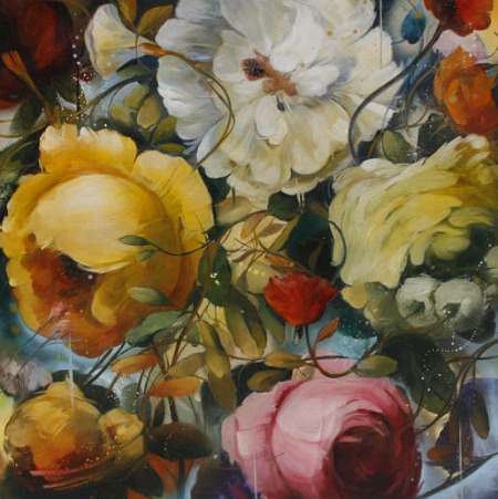 Cada flor es única en su manifestación particular de la mayor codificación genética dentro de ella. Lo mismo debe decirse de todas las personas de nuestra propia especie. Y así, al igual que los monjes budistas vieron su verdadero ser reflejadas hacia ellos en las flores que contemplan, por lo que deben cada espectador encontrará su propia conciencia inimitable de sí mismos y su mundo entretejido en el juego de color, la textura y la forma de los lienzos de Blandino.