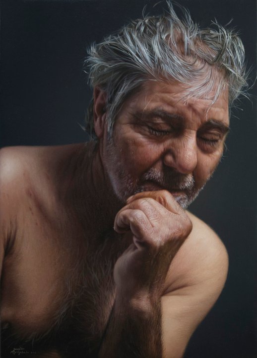 Su trabajo se halla en un realismo de quien busca, experimenta y se expande; de las calidades táctiles a la mirada del personaje, del acrílico al óleo, del pequeño formato al medio formato, sabiendo que los límites se los impone, principalmente, uno mismo.