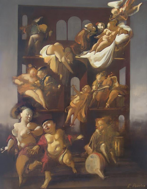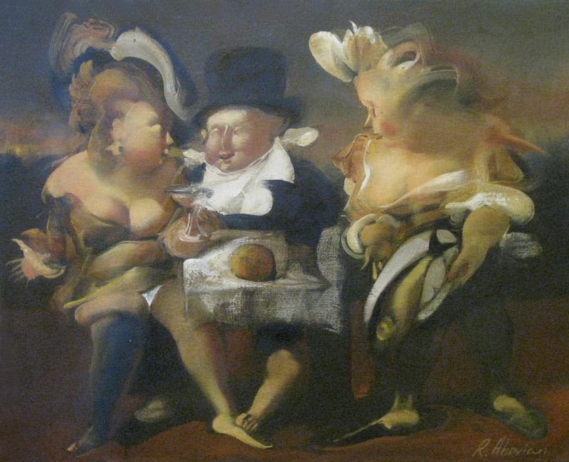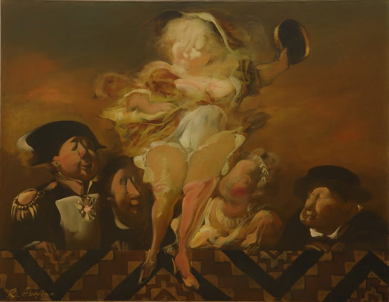 Ruben Abovian, born in Armenia in 1948, has long recognized as a painter of extraordinary ability of many world famous art critics and artists. His imagination is free and he produces an outstanding work that projected him as a distinguished artist. Abovian's exhibitions are always considered to be an important event. He is a true pioneer and has introduced many bold innovations into European painting. Ruben Abovian has established a new avenue in today's contemporary art. I have been impressed by the impact and the mystery of his personages and characters with no faces, without eyes. It is majestic and bewitching!